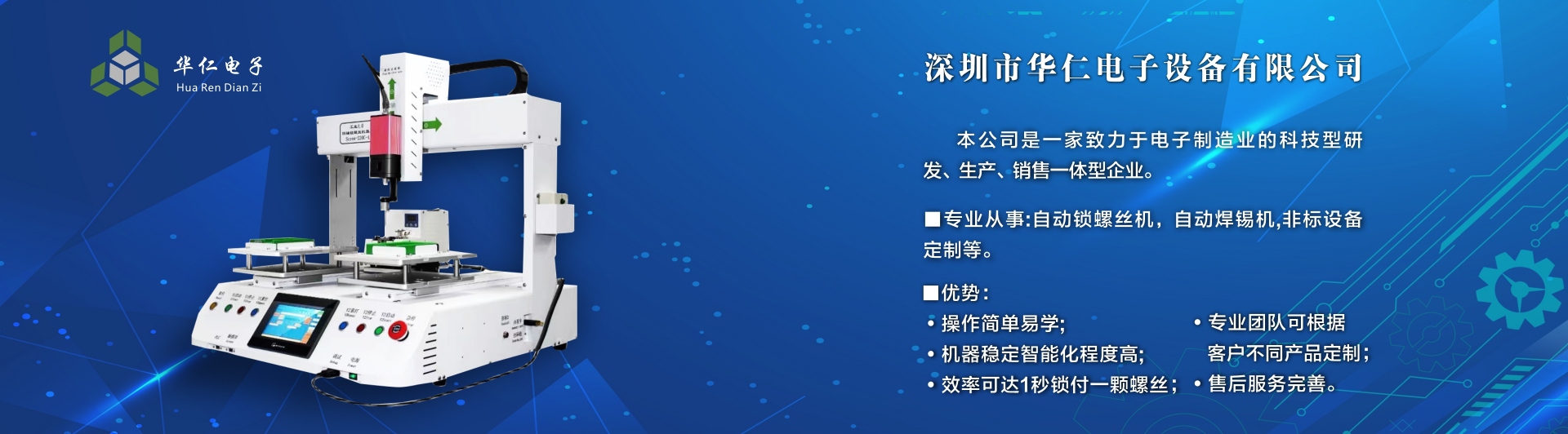 深圳市華仁電子設(shè)備有限公司是一家致力于電子制造業(yè)周邊設(shè)備的科技型研發(fā)、生產(chǎn)、銷售一體的企業(yè),專業(yè)從事:自動鎖螺絲機(jī);自動焊錫機(jī);非標(biāo)設(shè)備定制機(jī)等,公司長期以來在行業(yè)中積累了豐富的經(jīng)驗(yàn),擁有專業(yè)的研發(fā)、技術(shù)、銷售支持工程團(tuán)隊(duì)、各高級技術(shù)人才為客戶提供優(yōu)質(zhì)產(chǎn)品和服務(wù),同時(shí)不斷吸取國內(nèi)外先進(jìn)技術(shù),更準(zhǔn)確及時(shí)地為客戶提供優(yōu)質(zhì),性價(jià)比高的產(chǎn)品、公司以專業(yè)的售前、售中、售后服務(wù)贏得了客戶的信賴和好評,為客戶提供先進(jìn)自動化設(shè)備一體式解決方案、